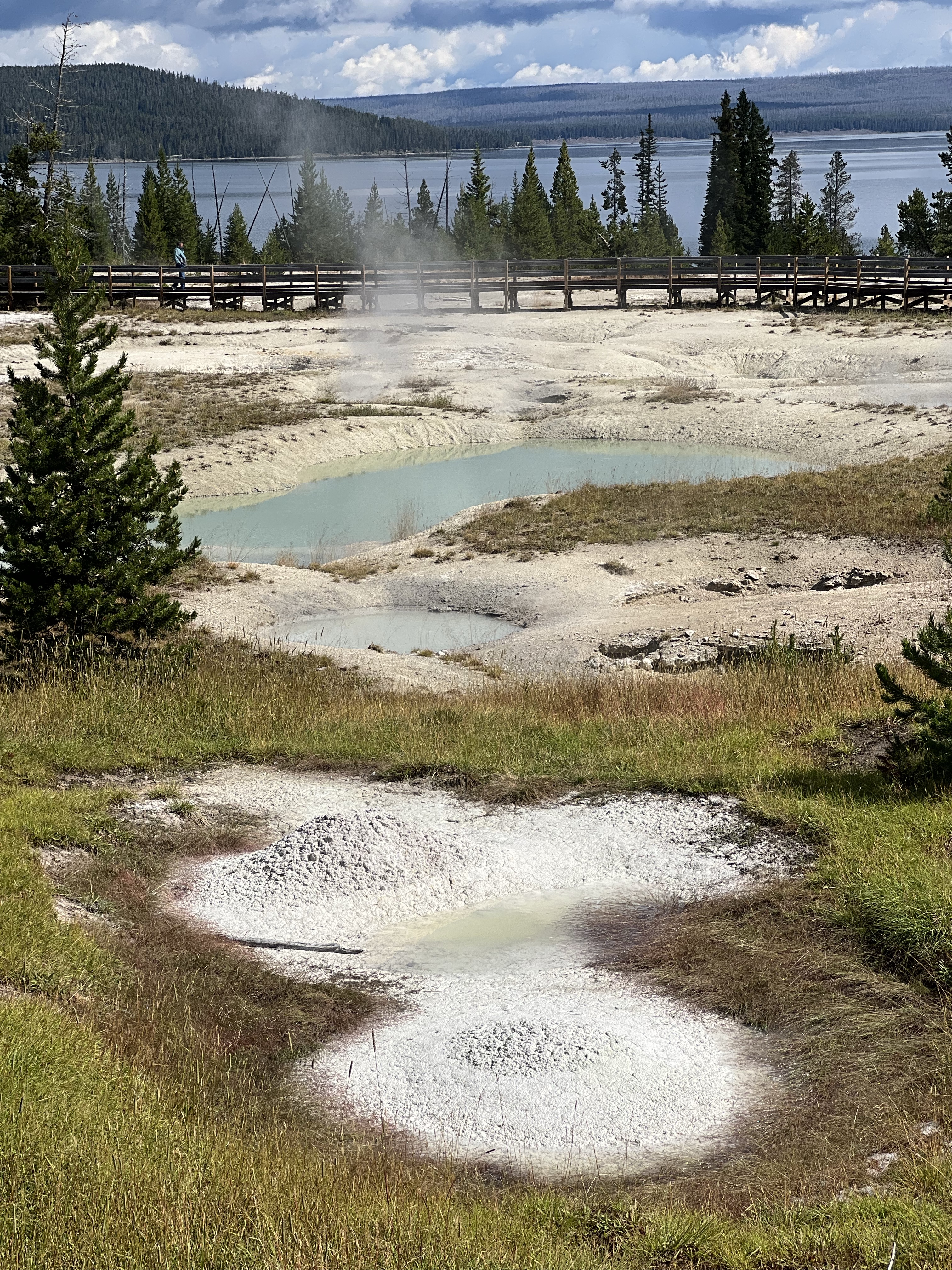 After a hearty breakfast of oatmeal, we packed and cleaned for Bear protection. Something new for us. While we had camped many times, this level of bear procedure was new. All items, even water, had to be packed away when you were not in camp. As I do not enjoy bears were I sleep… that camp was spotless before we left for West Thumb Basin.