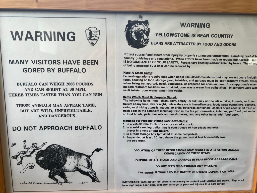 West Thumb was a great choice for our first day. With the exception of a few stops for roadwork, it was a great easy way to see things while also giving us time to explore where we were camping. Our original plan was to go through Cody, WY on our way into the park, therefore picking up some food at the Walmart there, but due to weather, we were rerouted. As a result we did most of our shopping at the General Store in camp. While it was a little more expensive, it was also a really good way to feel at Home in Yellowstone.
