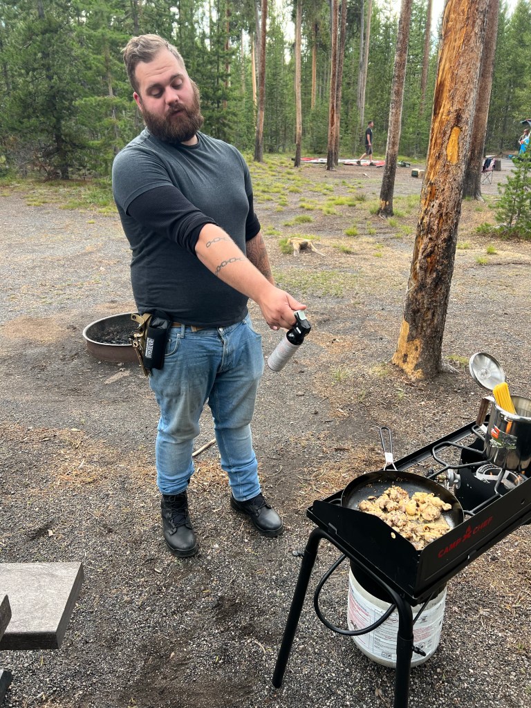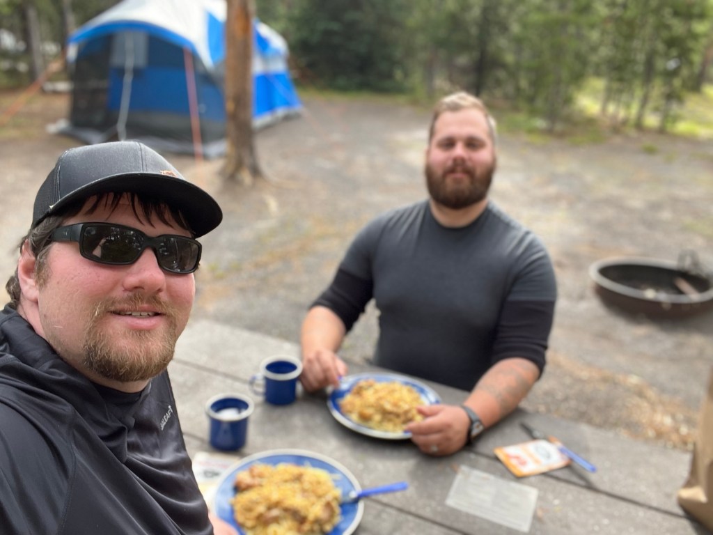 That first night we did some backpacker chicken alfredo with some fresh chicken added in for a little extra umph. Here Nick adds a little bear spray to the meal for some extra kick. (Please laugh so I don’t have to post this joke every time we cook in bear country.) While on the topic, that was also new for me. For as long as I was a Boy Scout and as many times as I have been in bear country, I never carried bear spray. But in Yellowstone, it was a staple. “Get up, keys, wallet, phone, bear spray. Okay lets go.” Both comforting and terrifying for the man with the fear of bears.
