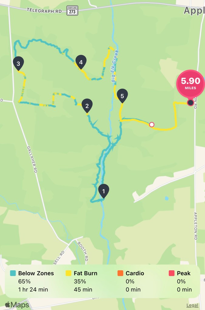 The trail weaves its way through a variety of features. It goes up and down in elevation, crosses streams and creeks, winds through forests and fields, and provides a look at some of the horse farms and ruins Fair Hill is known form. As we hiked along, we were not surprised that the Rangers picked this route. It seems to be the best of a bunch of the trails near the Appleton Road Trailhead. Overall we were a fan of this hike.