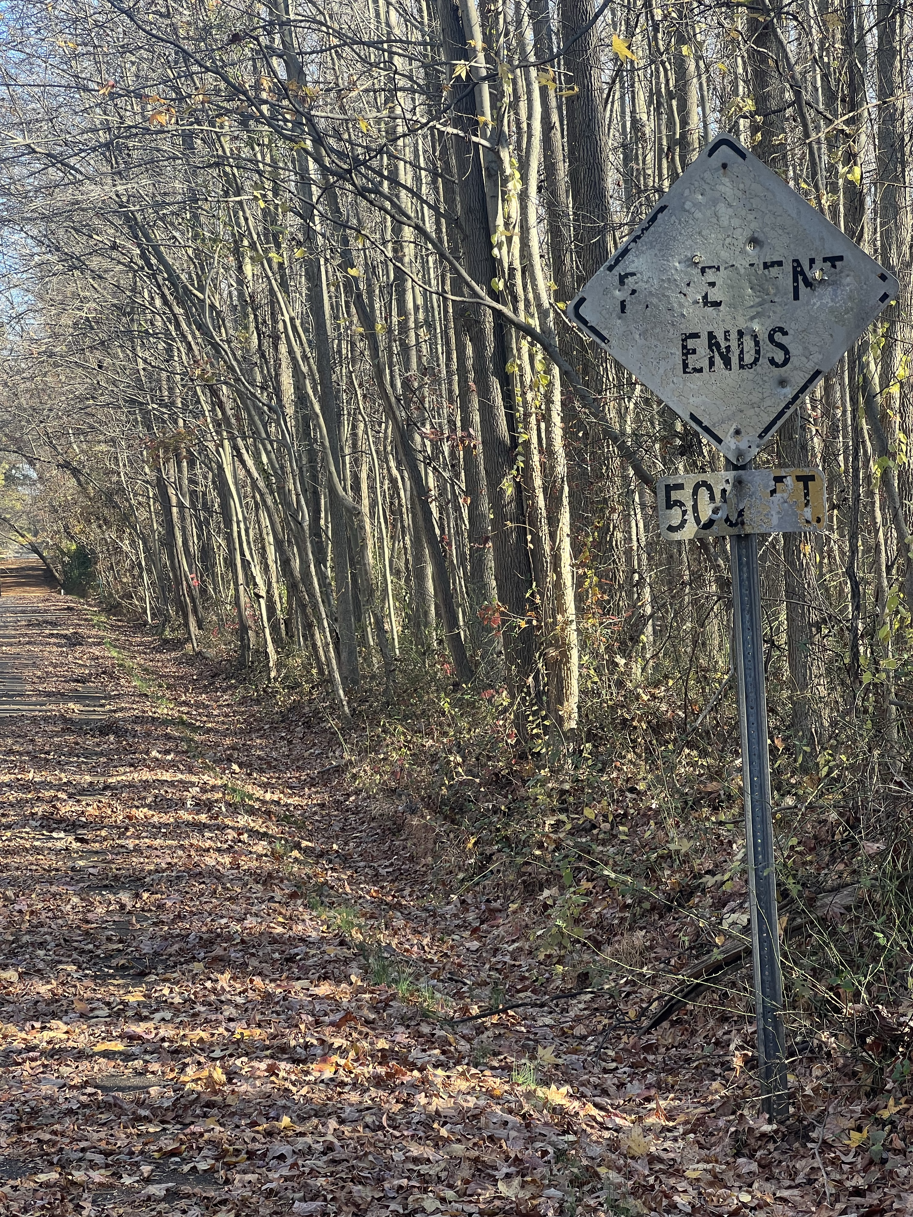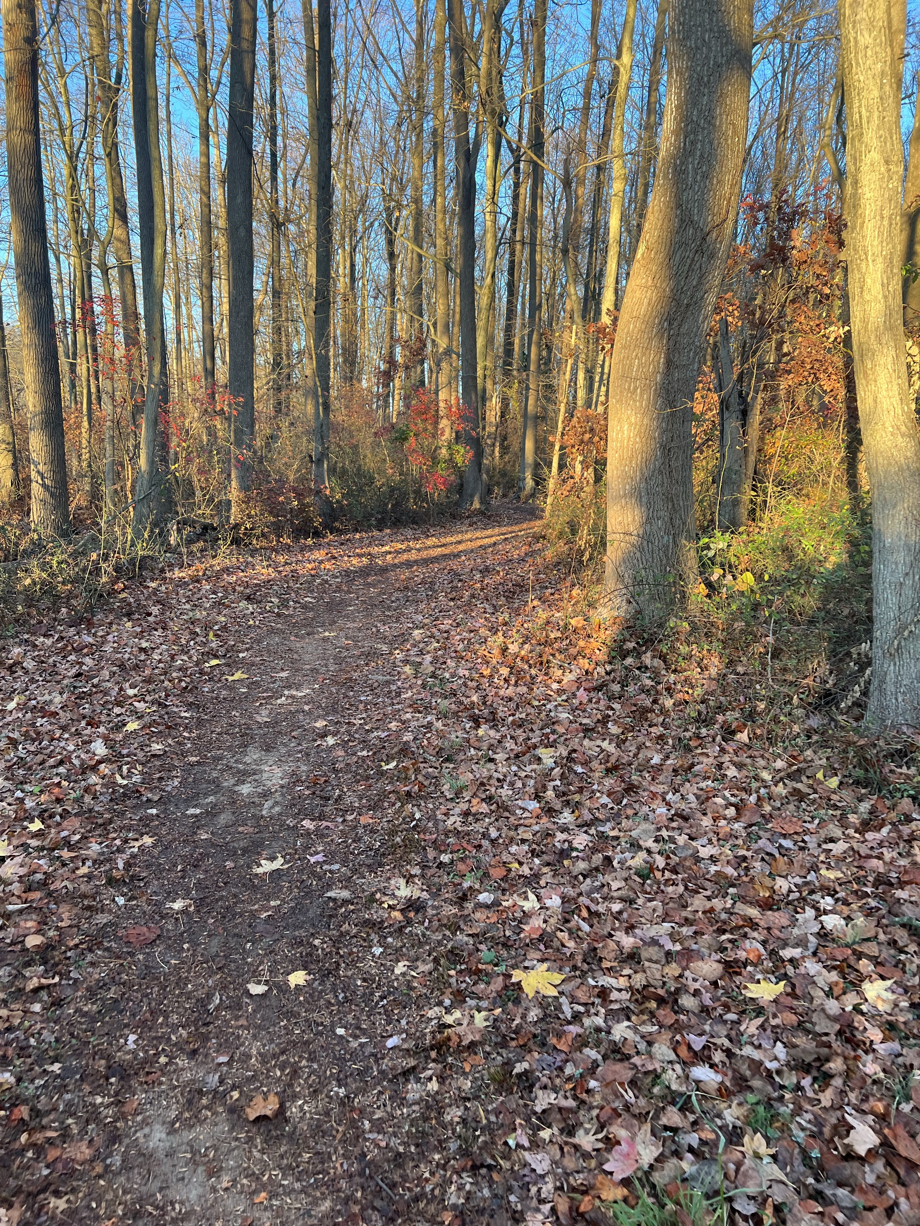 Unlike the Swamp Forest Trail, this trail does not hug tight to Lums Pond, and instead creates a much larger circle through the variety of landscapes this State Park has to offer. At different points you walk through fields, forest, and near the pond. It was a very peaceful hike. Now part of that has to do with the fact that I was alone and it was 8am on a Sunday in November, but some of it has to do with just the distance from things you are at various points in the hike. It was definitely good for the brain to take a break. Except for one part where you hike on a road that seemed it could be a set of “The Last of Us”, that was a little unnerving to walk alone.