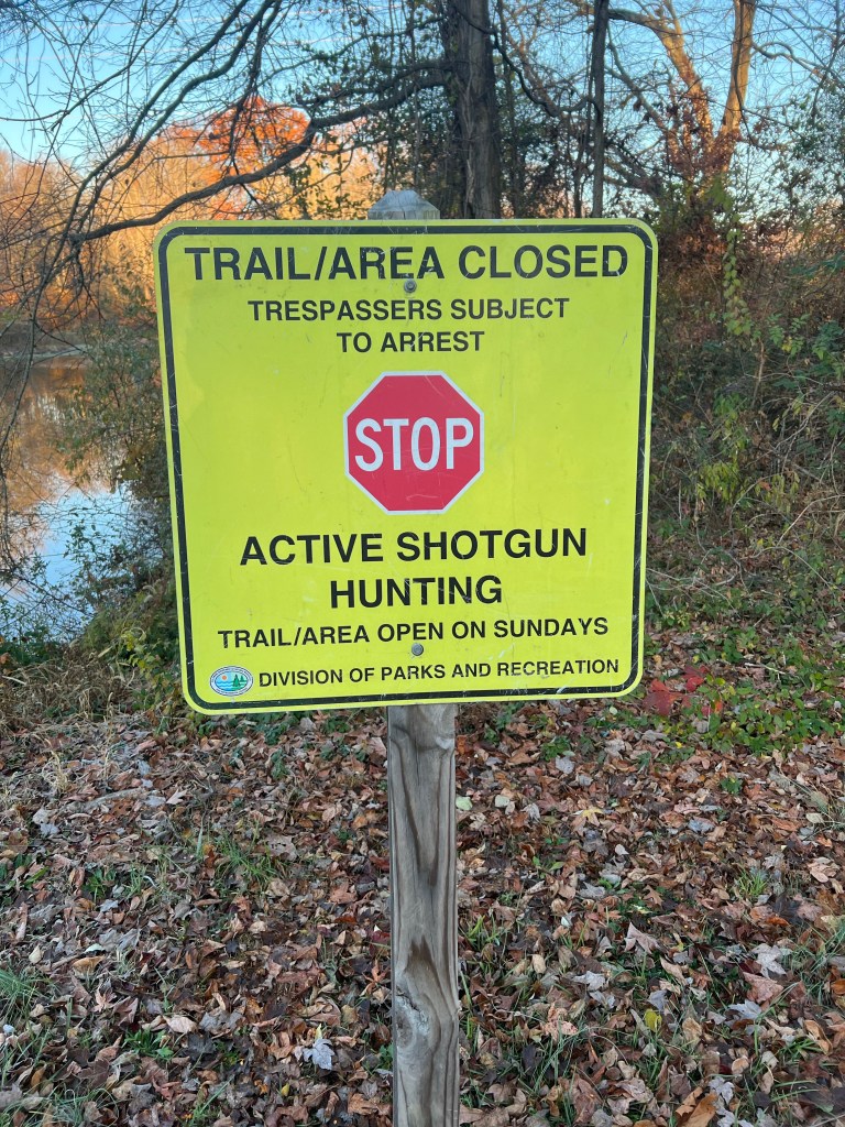 Before I forget to mention this important detail, always make sure to check ahead of time with park offices if you are planning a hike around this time, especially in November in the North East. Since we drove off all the natural predators of the White Tailed Deer around here, hunting is a vital management strategy for the their exploding and otherwise unchecked population. At Lums Pond the shotgun hunting season is active, so I needed to make sure that this trip happened on Sunday when there is not hunting. Even so, I double checked that it was Sunday when I reached this sign… I like to not be shot.