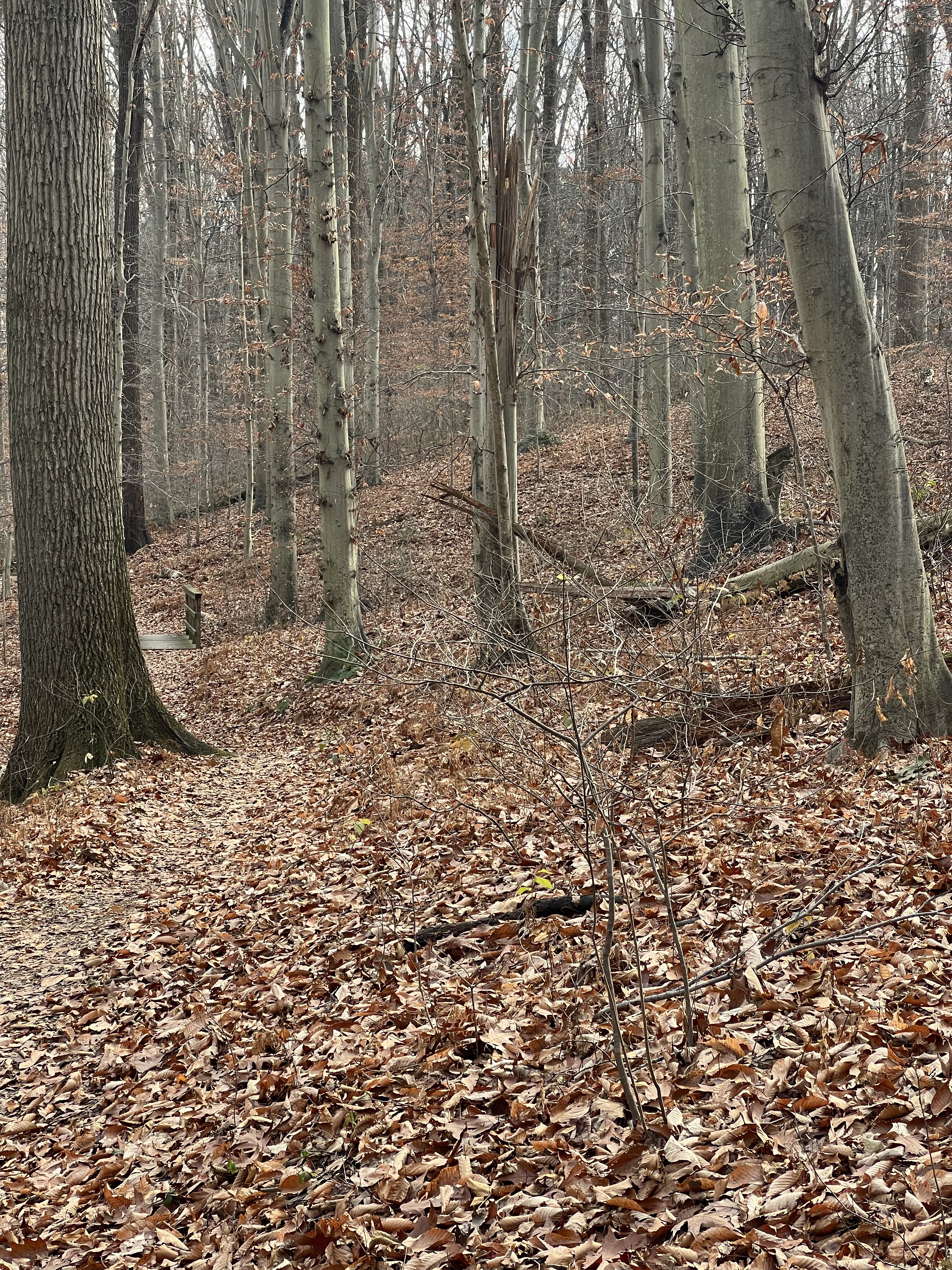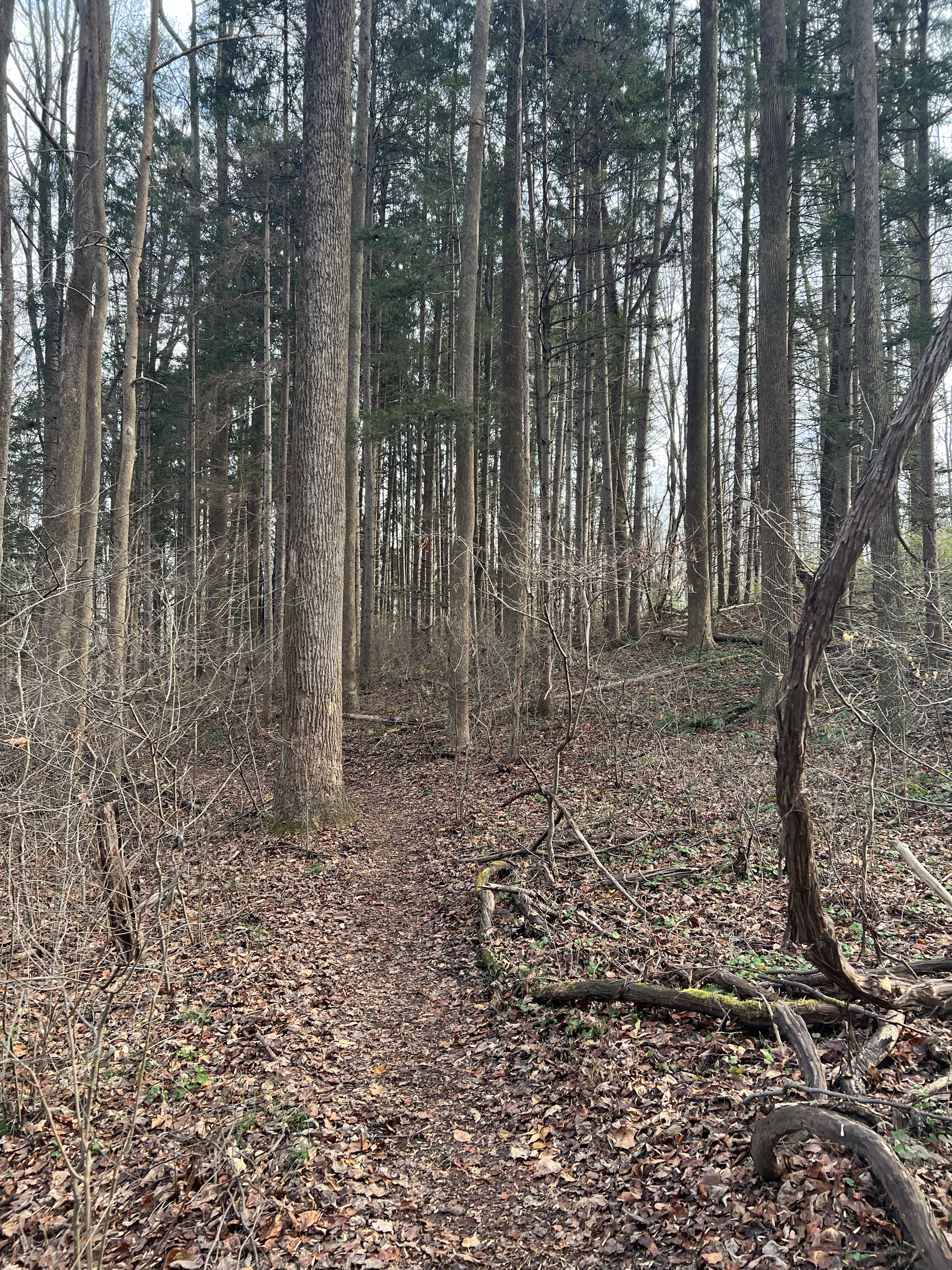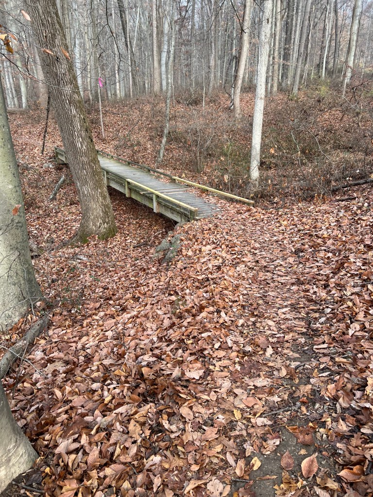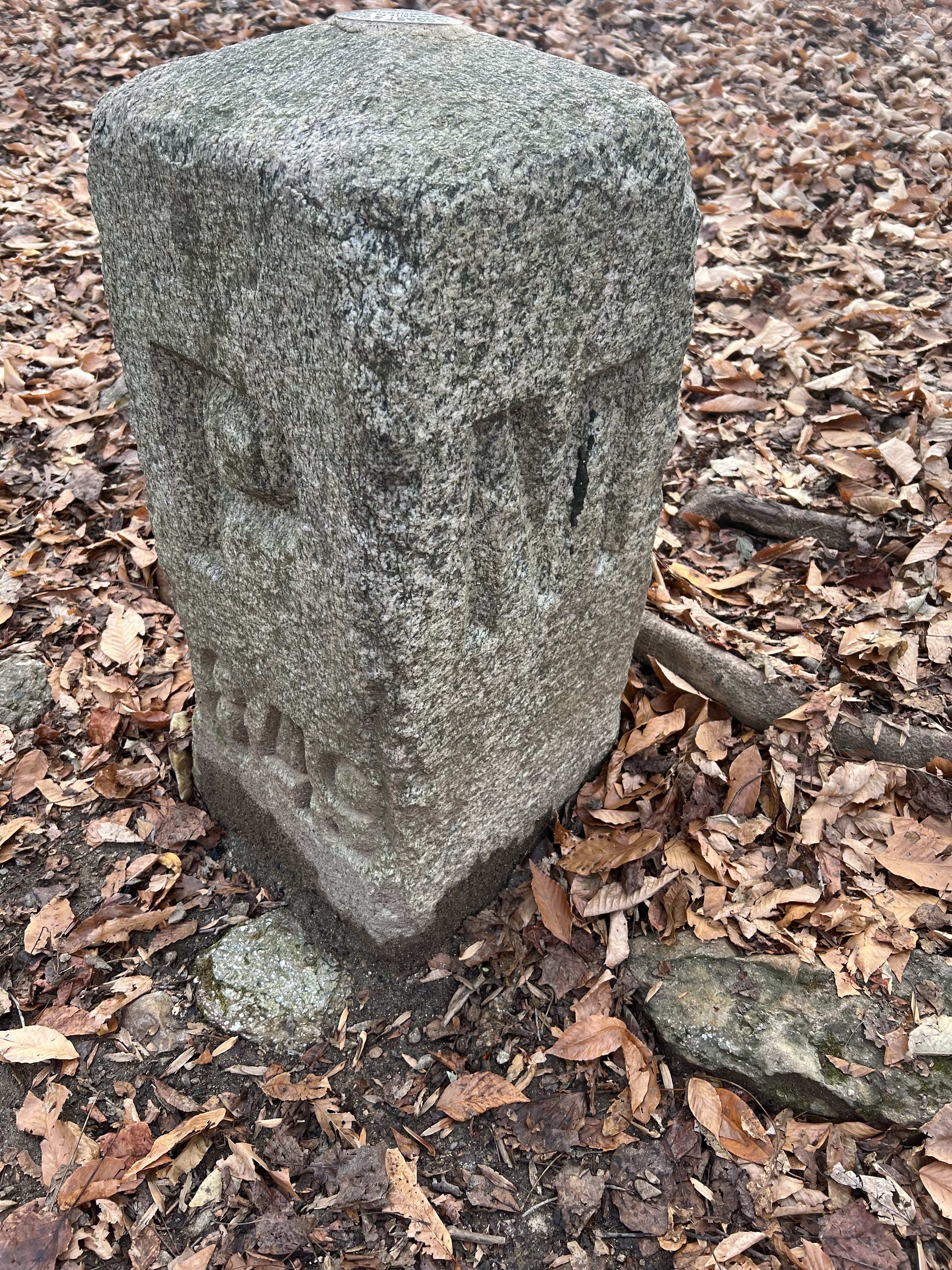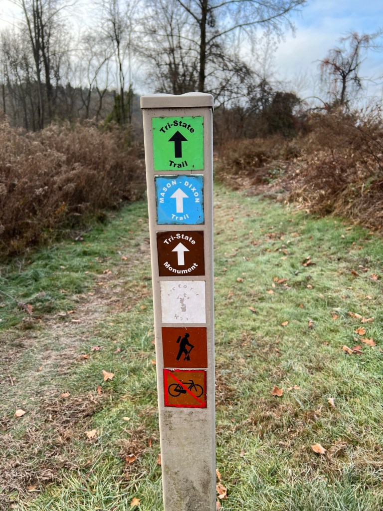 The trail itself is pretty cool, with all the hallmarks of a Pennsylvanian or a Western Maryland trail. It had a few bridges over some creeks, ravines, and the connects to different terrain features. The trail winds through a couple of fields and different types of forest. One of which was a kind of pine forest which was particularly cool given that it is fall and almost all the of the other foliage had lost its leaves. At about 3.76 miles, the trail provided some fun sights, like the Tri-State Monument, without breaking your back.