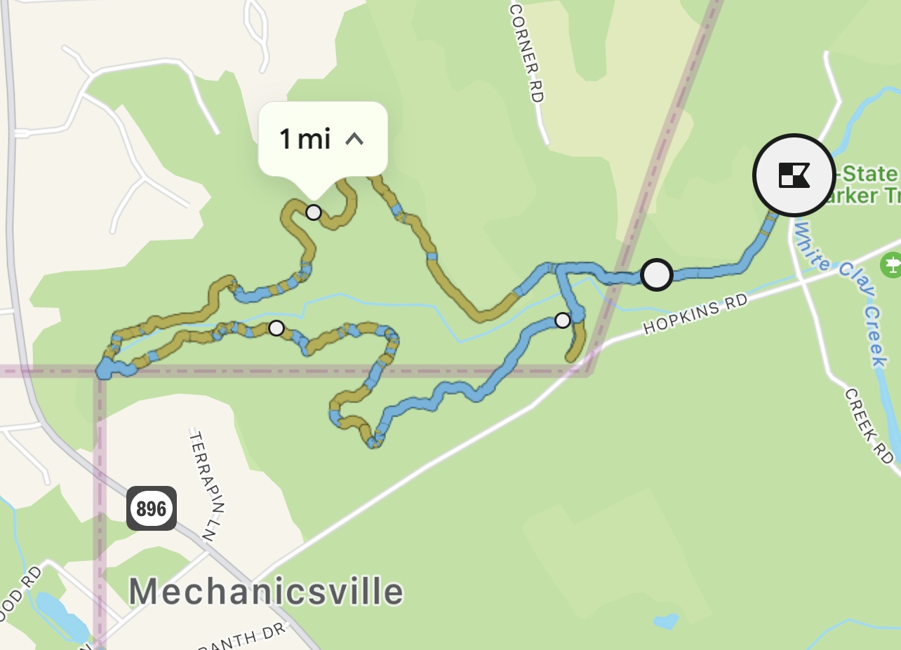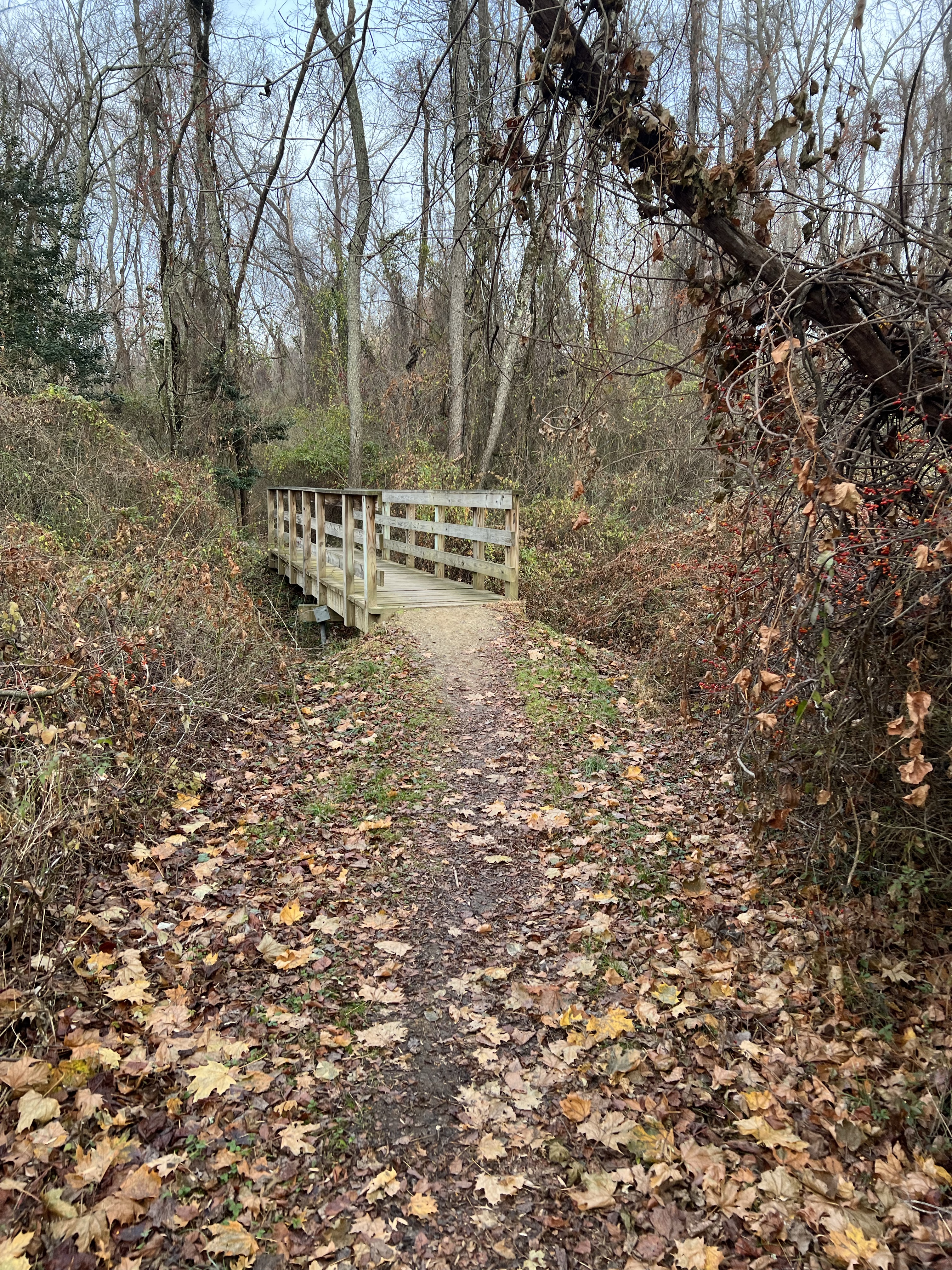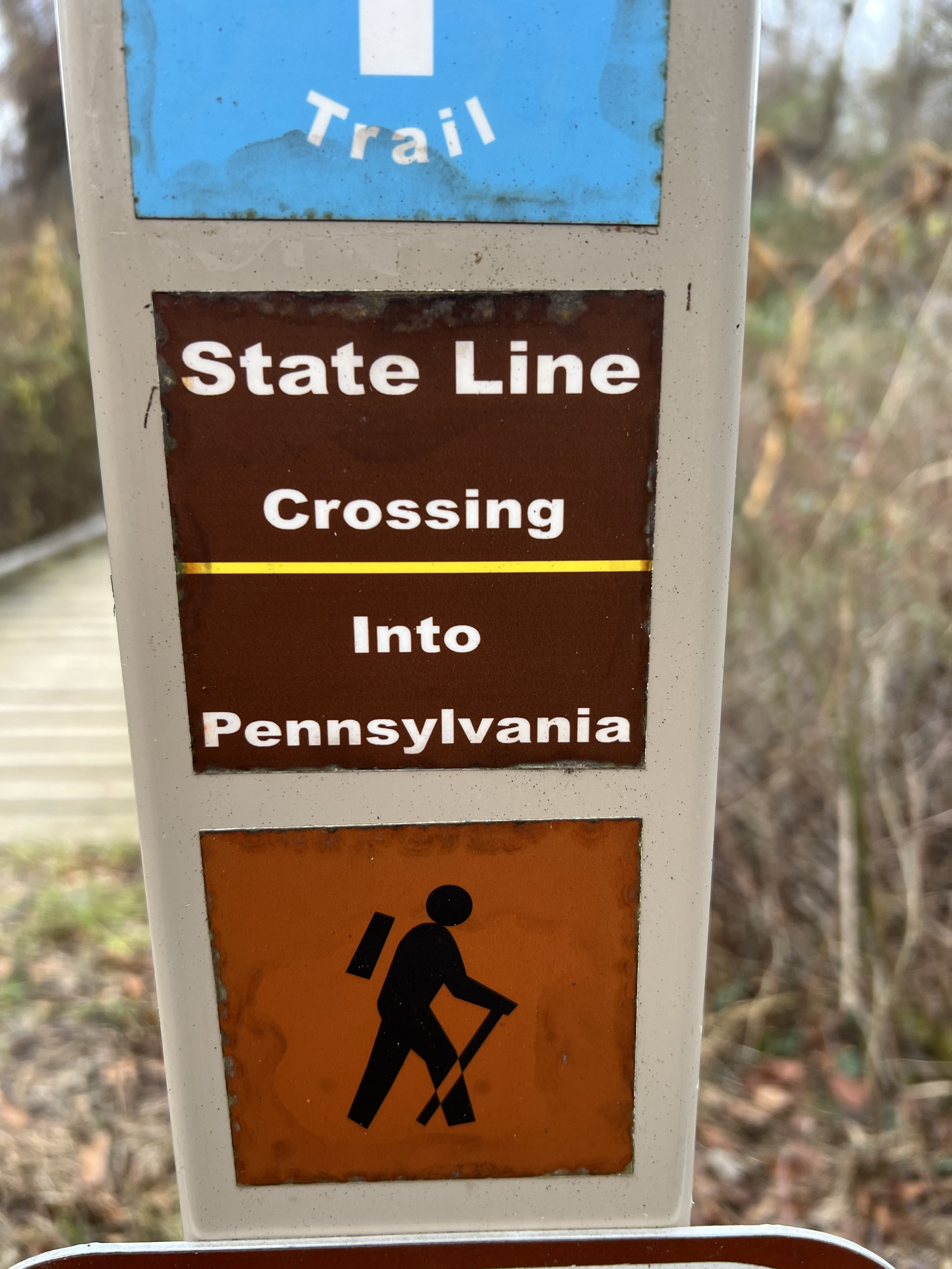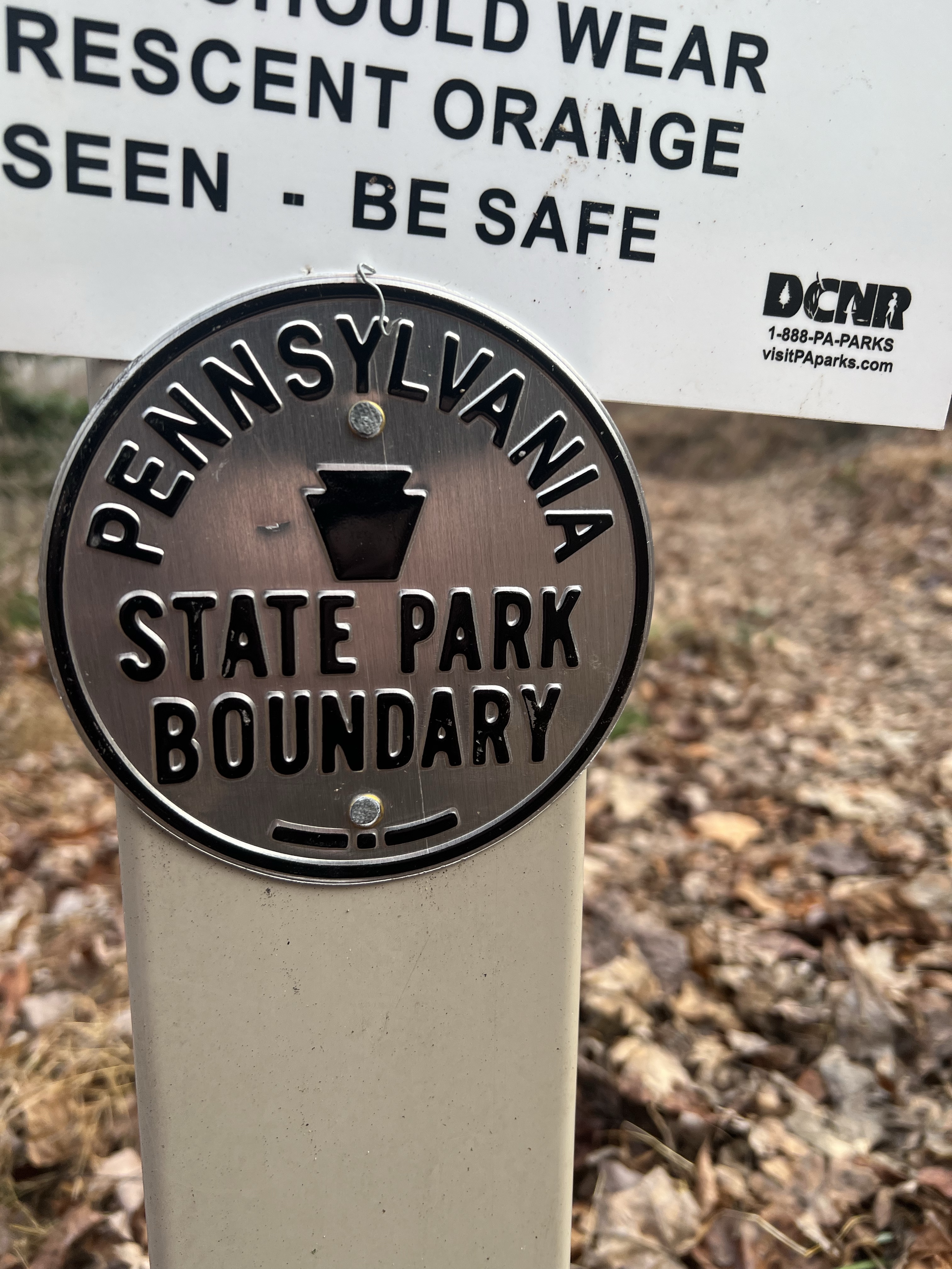 This is a very cool one for sure. With a trail head at the White Clay Creek State Park’s Nature Center, the Tri-State trail is one that runs across state borders. It starts in Delaware, crosses the first state line into Pennsylvania’s White Clay Creek State Preserve, and winds its way around until it gets to the tri-state Monument on the border of Maryland, Pennsylvania, and Delaware. This trail, like with the one at Lums Pond State park I walked solo this week, I also wore bright orange.