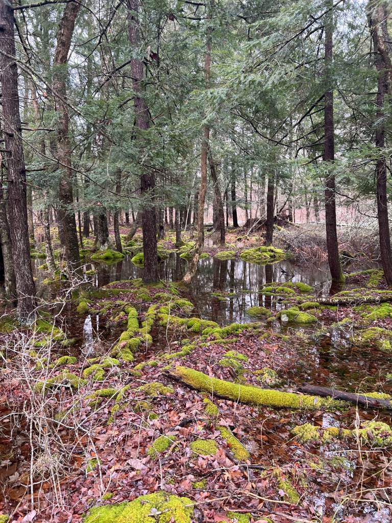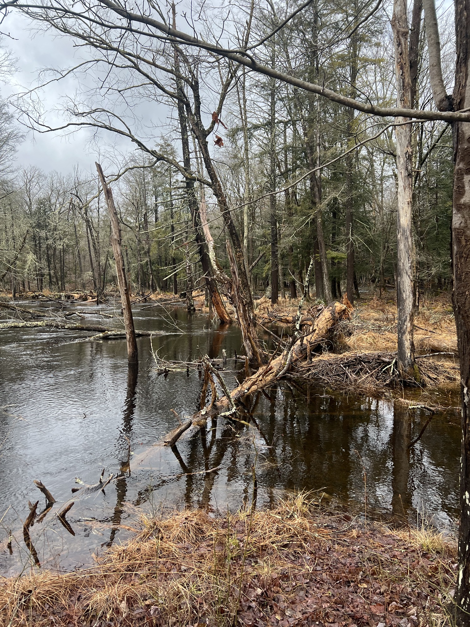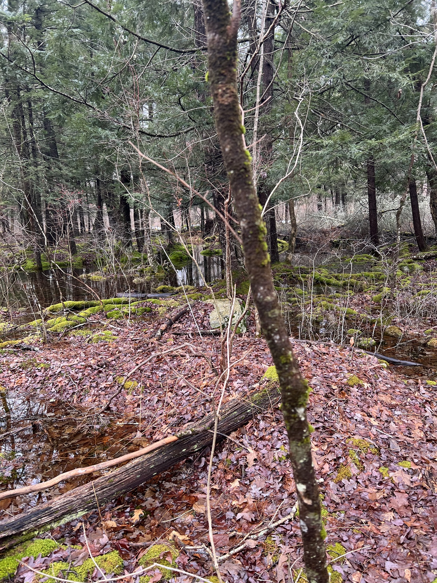 While there are plenty of stories about how this particular forest and lake duo have turned the elements against me, today we will focus on water. As you can see, it was VERY wet on this particular hike. And as we made our way around, it became less of a hike over land and more of a test of boot waterproofing techniques. Most of the time, we followed a stream which was once a trail as we walked through the forest. Soon however, even that became a bit of a challenge and we had to get more creative.