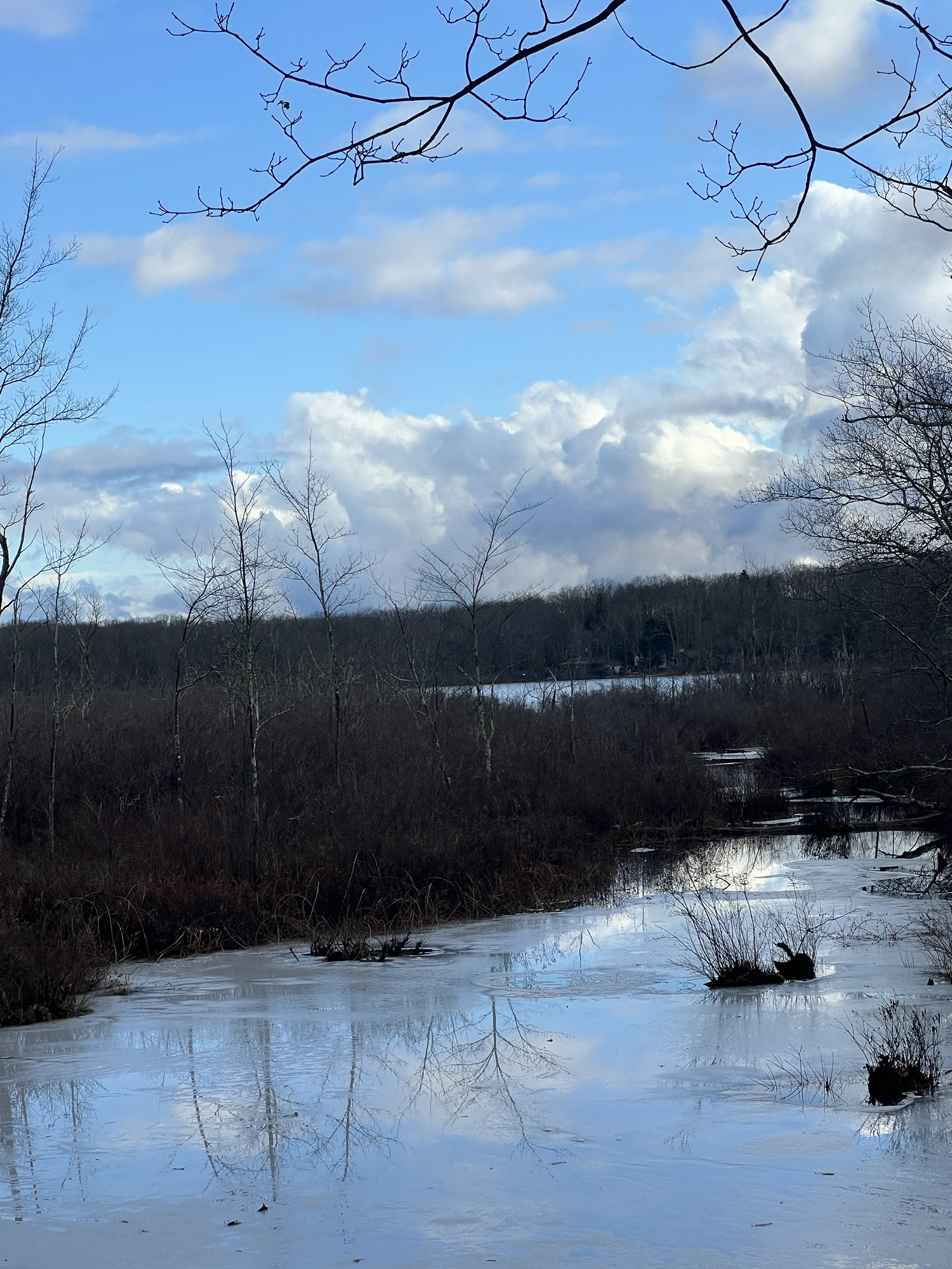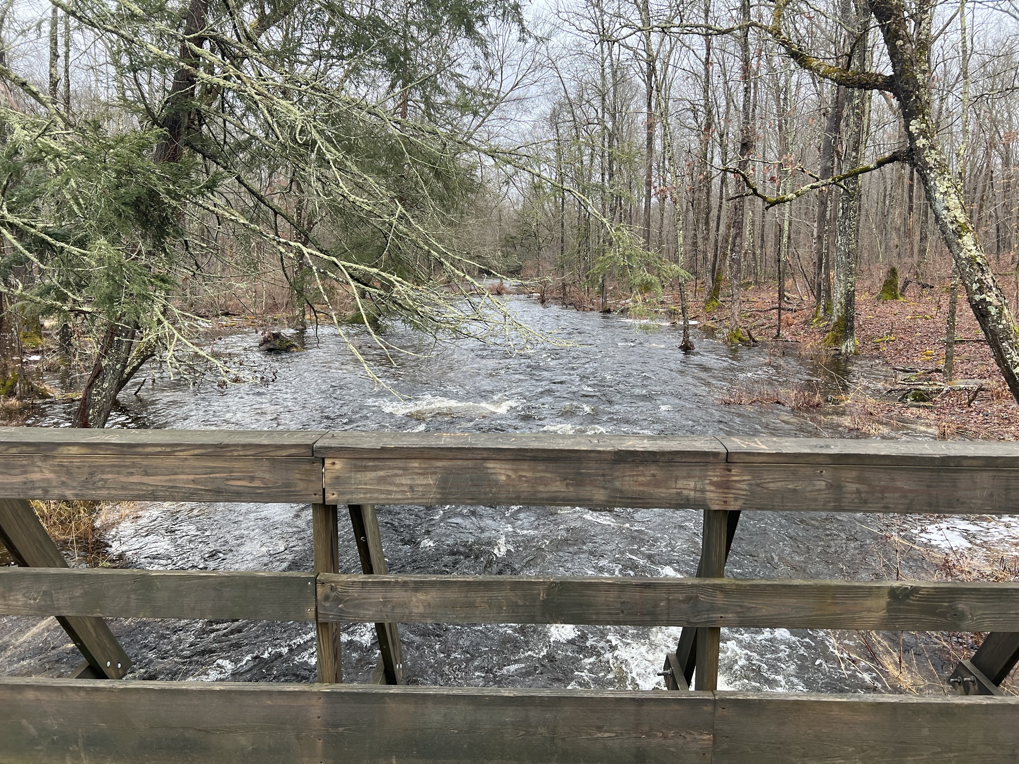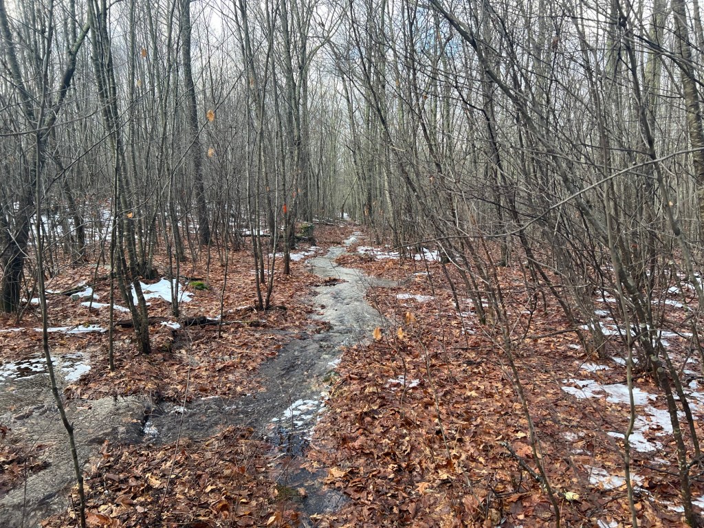 While there are plenty of stories about how this particular forest and lake duo have turned the elements against me, today we will focus on water. As you can see, it was VERY wet on this particular hike. And as we made our way around, it became less of a hike over land and more of a test of boot waterproofing techniques. Most of the time, we followed a stream which was once a trail as we walked through the forest. Soon however, even that became a bit of a challenge and we had to get more creative.