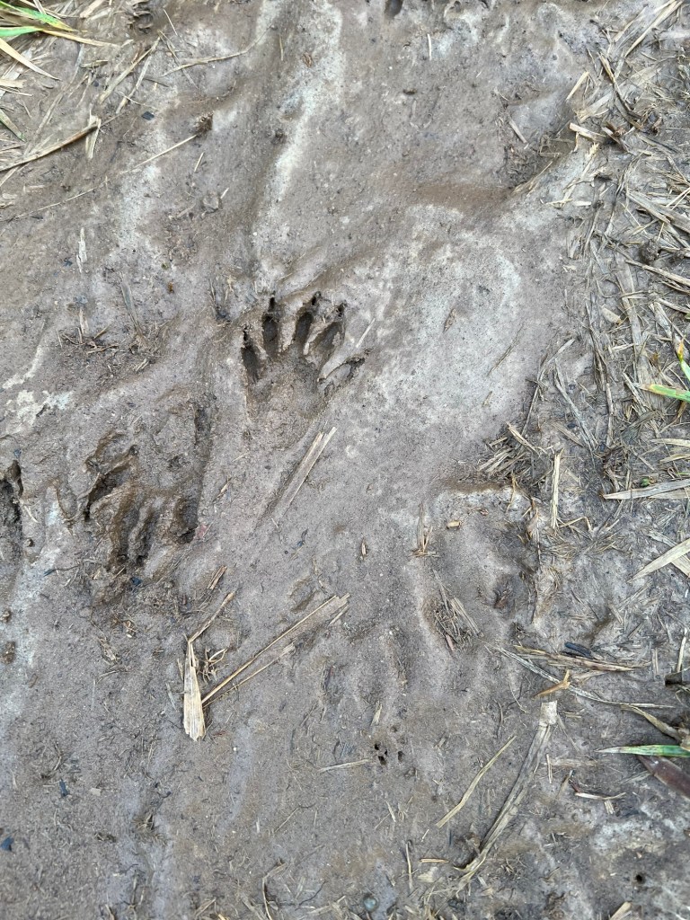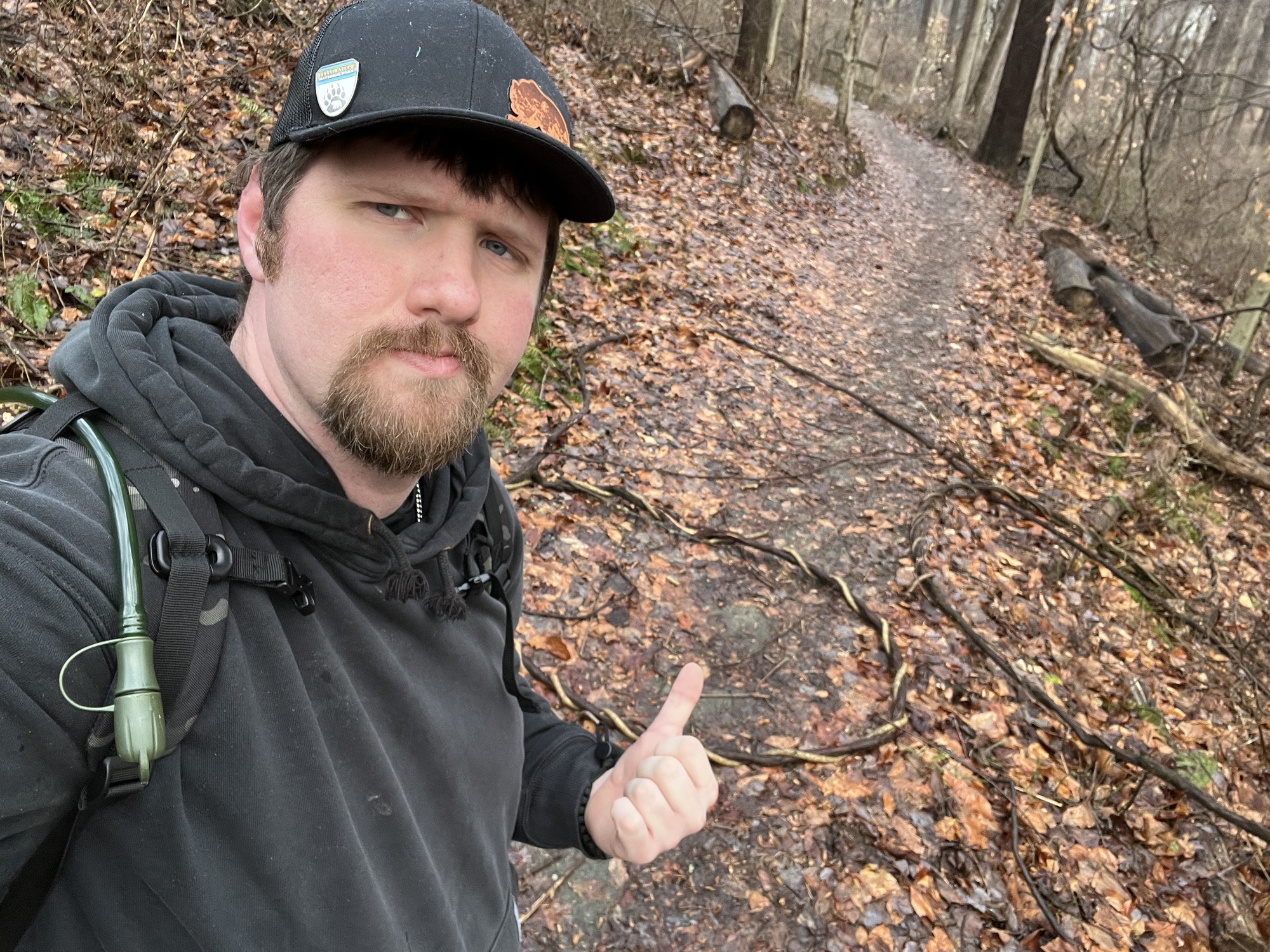 It was hard to believe that less than a week ago Seningen and I had been hiking in the snow. This day was very much like a spring day and the wildlife seemed to be out and about too. Here I found some Racoon tracks, I also saw a rabbit and a White Tail Deer along the trail. I was not fast enough to get pictures of either of those things, once again making me question my ability to hunt if I couldn’t even get a picture. That aside, if it was this lively in the middle of winter, I imagine it has a lot more to offer in the spring and summer.