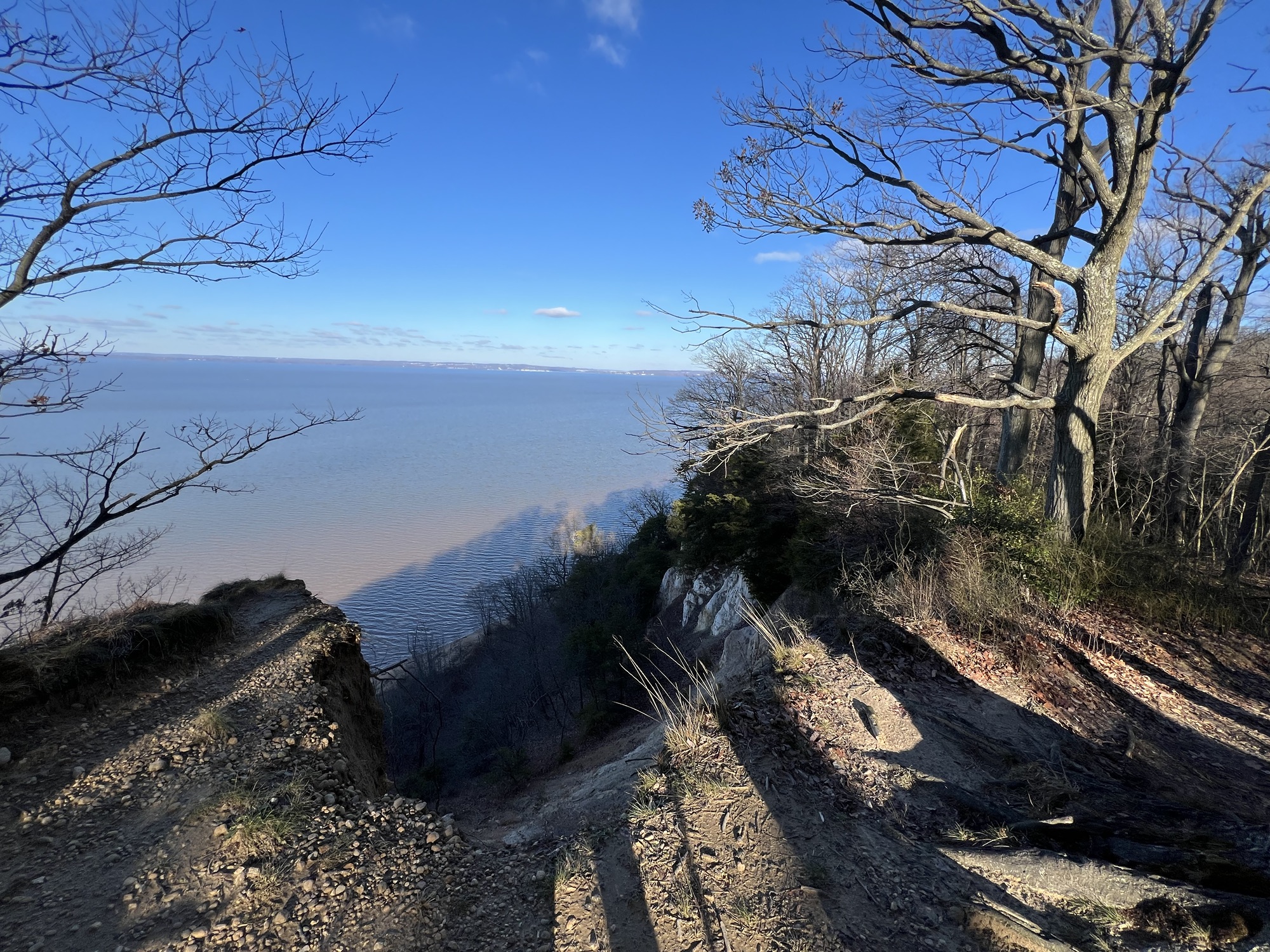 The view from the actual White Banks cliff is well worth the hike out. Believe me when I say this trail makes you work for the view, but the view it provides is one pretty unrivaled on the Chesapeake Bay. Here we are out of breath and still only about half way through our 6 mile hike. While the switchbacks were very well done, you will doubtlessly be out of breath before you see White Banks, leaving very little for it to take away.