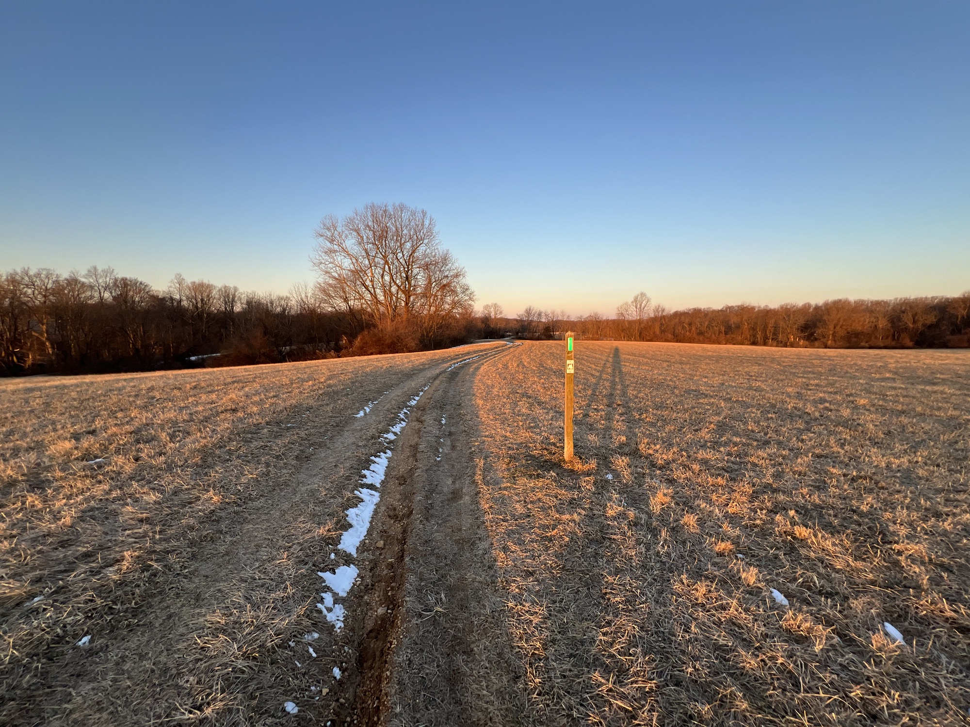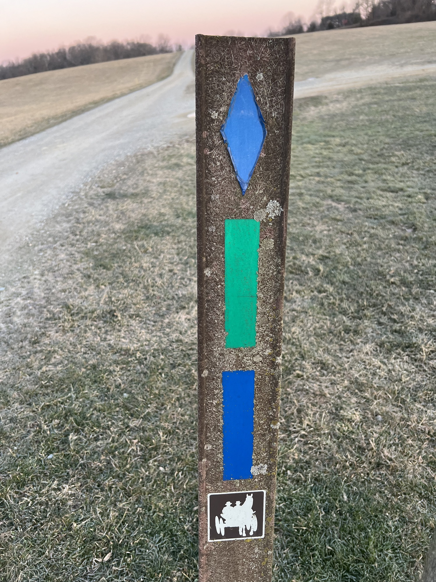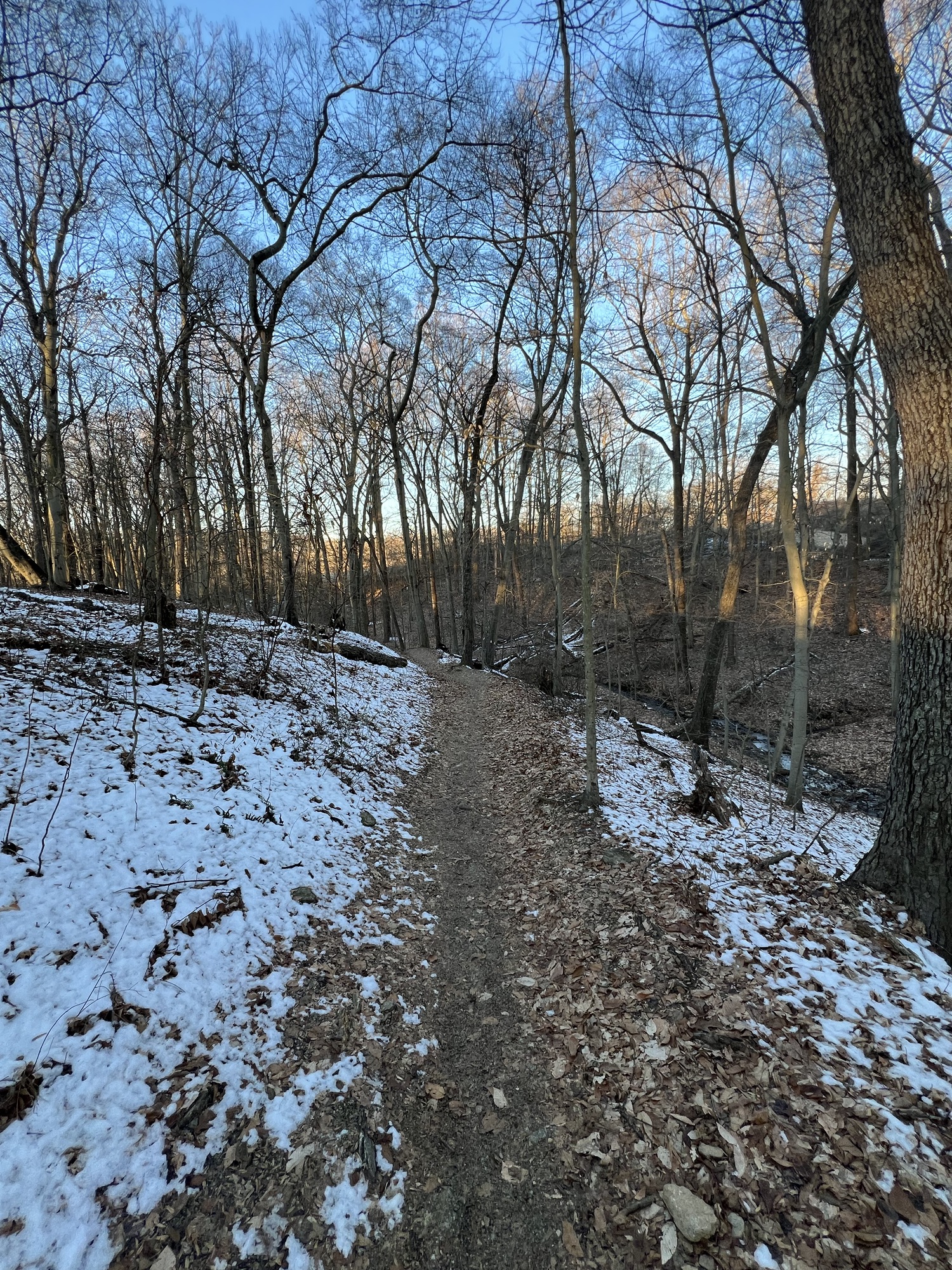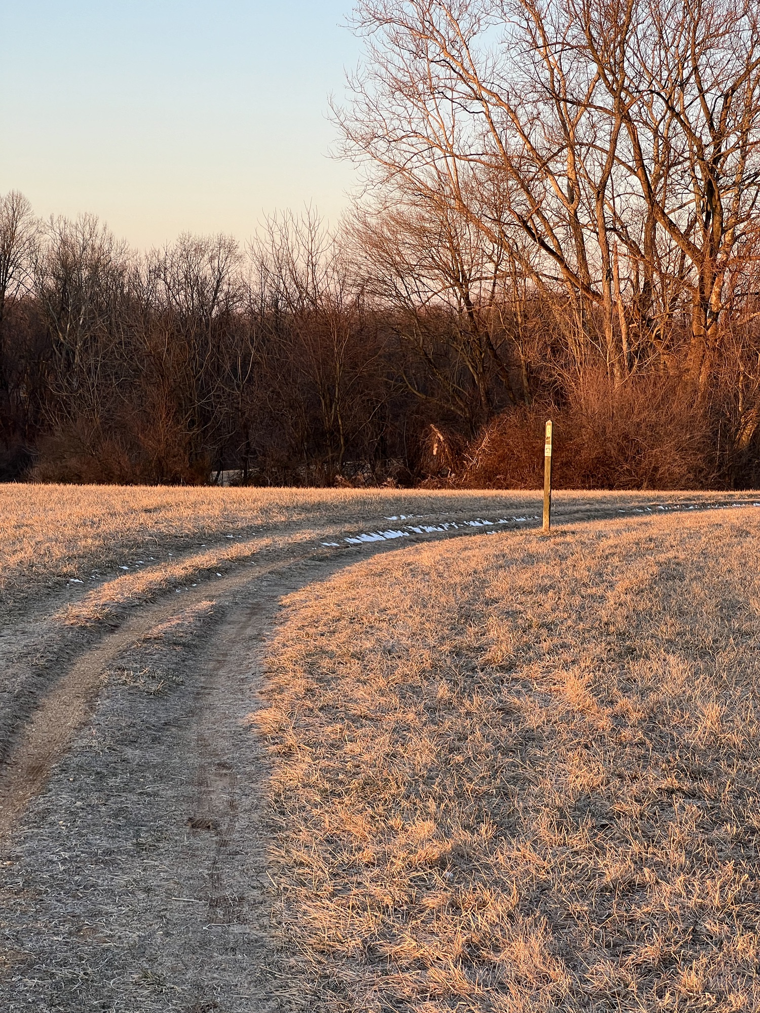 Did a sunrise hike at Fair Hill Natural Resource Area. Wanted to get some hiking in, but motivation is hard to come by with it being this cold. With Seningen down for recovery from his surgery, I have discovered that I am not as enthusiastic about walking through the ice and cold as he is. In any case, this time I did a combo trail loop.