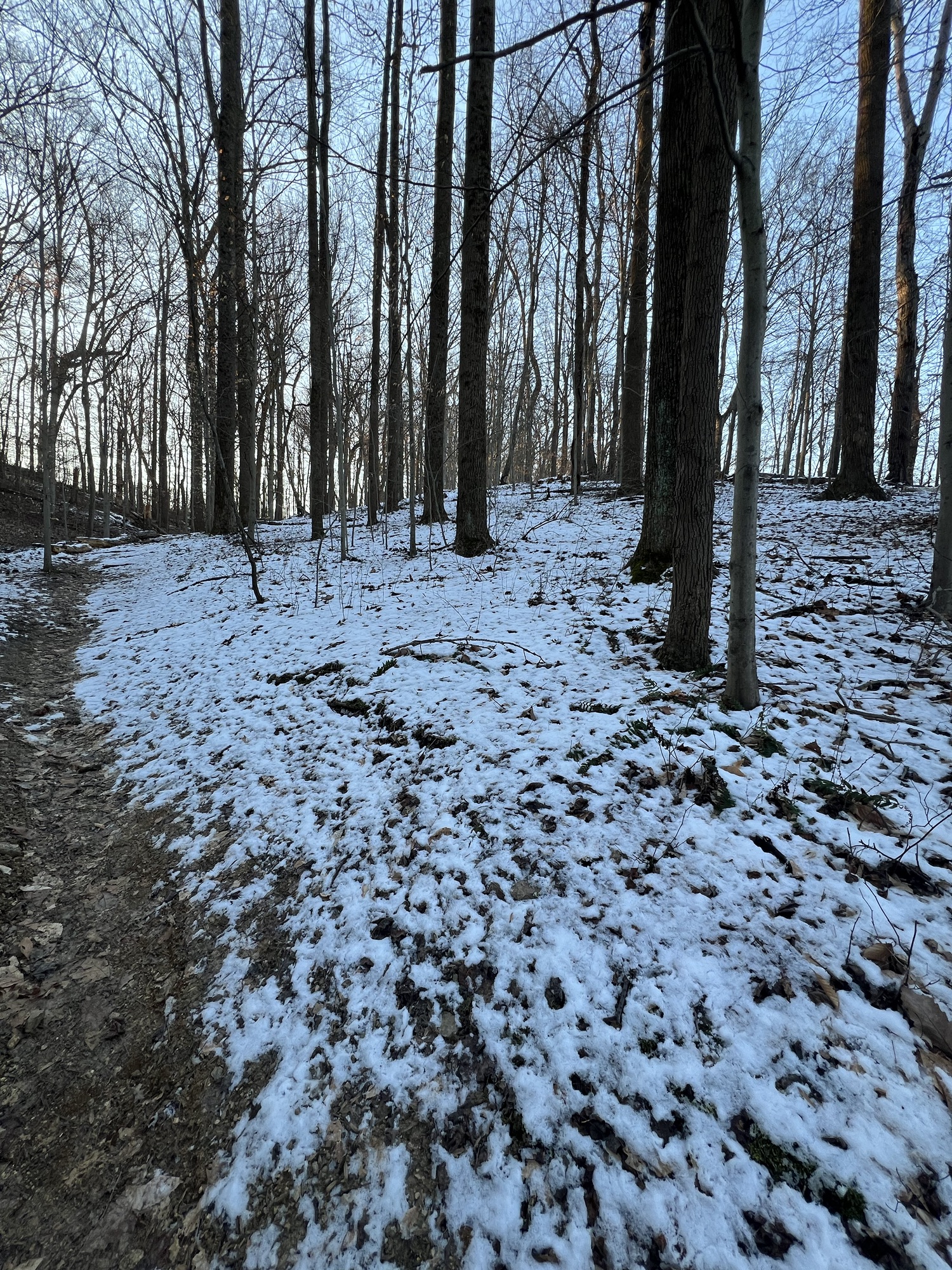 Now, I certainly shouldn’t complain about the “Stupid Hill Trail” considering that I went into it knowing full well what the name was. That being said, this trail had a stupid stupid hill. Shocking news I am sure. While it was a lot of elevation increase, it was also a pretty cool hike. Because of the shadows of the hill, the snow was still in place and made a beautiful scene. When you reach the top of the “Stupid Hill” the trail looped back toward the Appleton North Parking lot. Overall the cut off is about a mile and half.