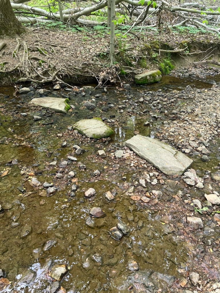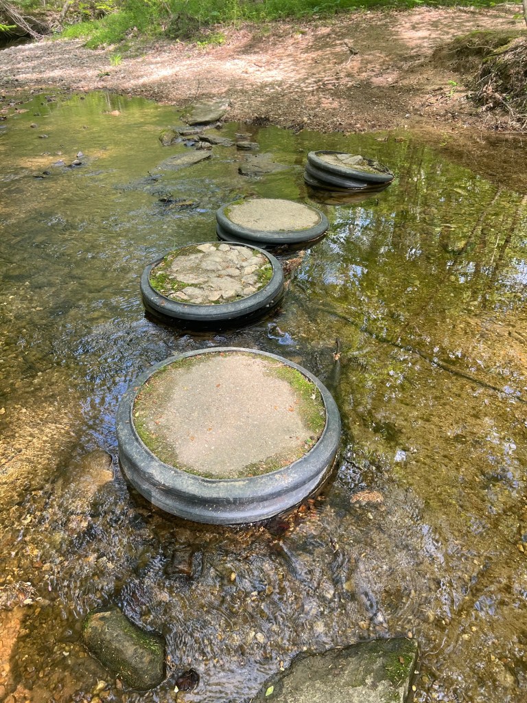 It crosses streams several times as you make your way through the forested sections of the trail. At each crossing there are these cool stepping stones that make it easy to cross the stream and make for a really cool experience. Several times through this hike, it feels like a story-book kind of hike. Walking through a tunnel of gnarled tree branches and jumping from stone to stone as you cross the stream definitely give you childhood sense of adventure.