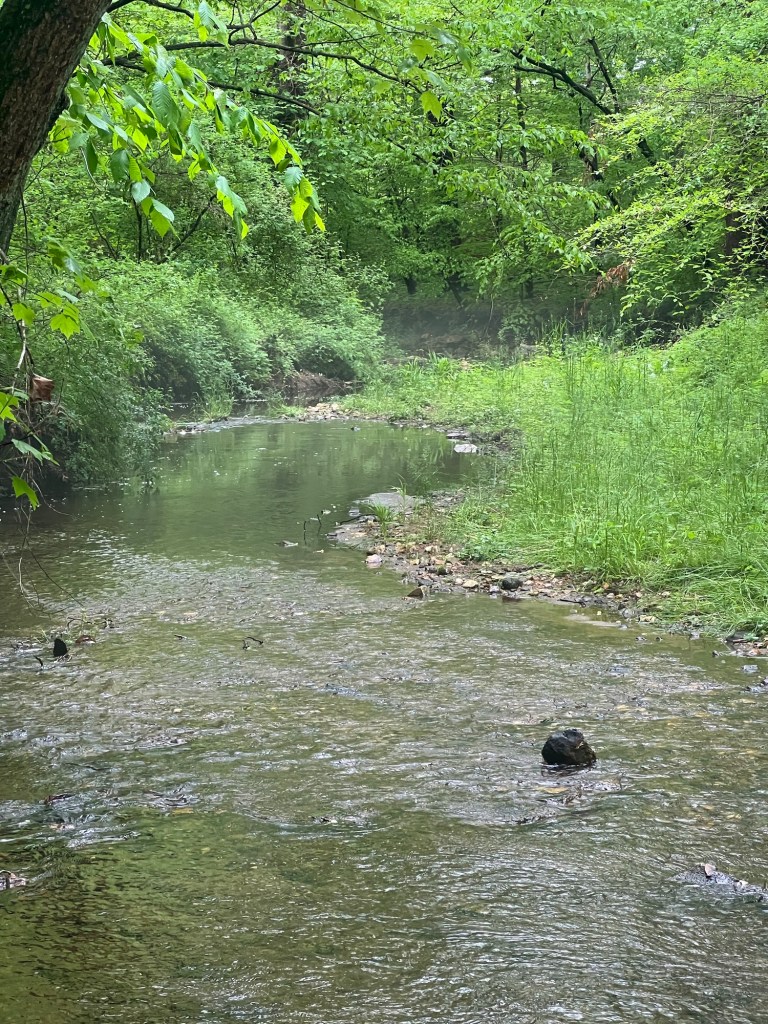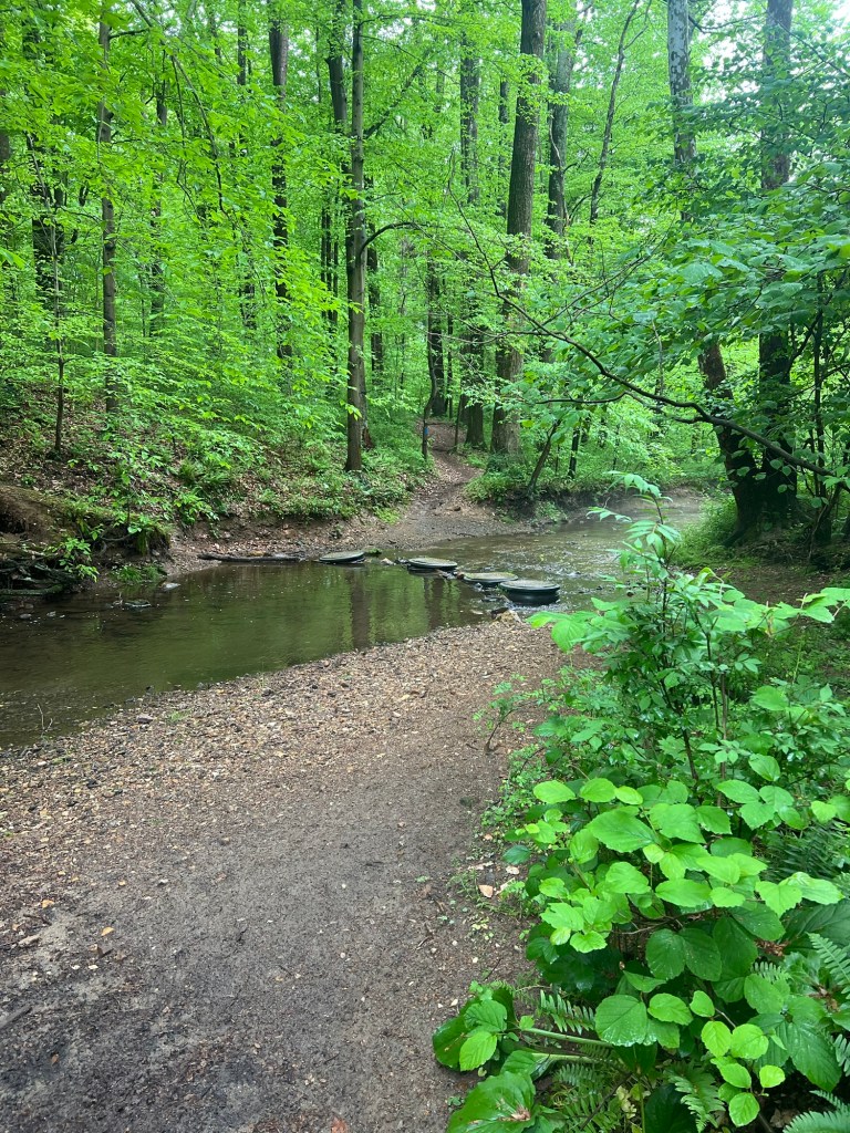 Once off the double track, you are greeted with this cool river crossing with a clear vision of the trail heading deeper into the forest. Maybe it is the nerd in me, but it gave me some Jurassic Park vibes. It was quiet, except for birds and animals, with mist rising from the water. Very serene. It also makes for a fun feature on a hike. Sometimes staring down at a dirt trail gets tedious. This kind of change up is much appreciate.