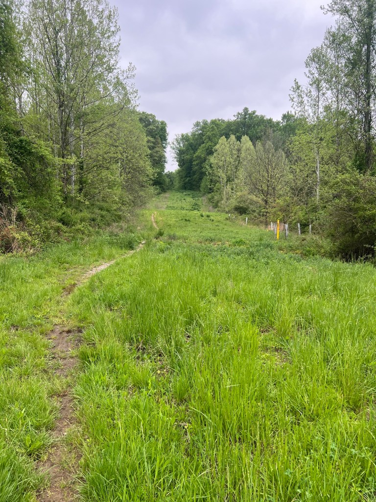 It starts off by immediately jumping across Appleton Road via a bridge. This is the first pretty cool feature on this trail. I love a good pedestrian bridge over a road. I am not exactly sure why, but it makes things more enjoyable. After crossing the bridge, you are greeted by a wide open rolling hill that takes you down into a forest. For the first little while you are on a double track trail, but then it turns off into the woods for a much cooler adventure.