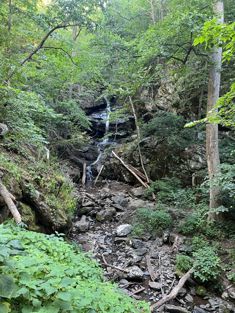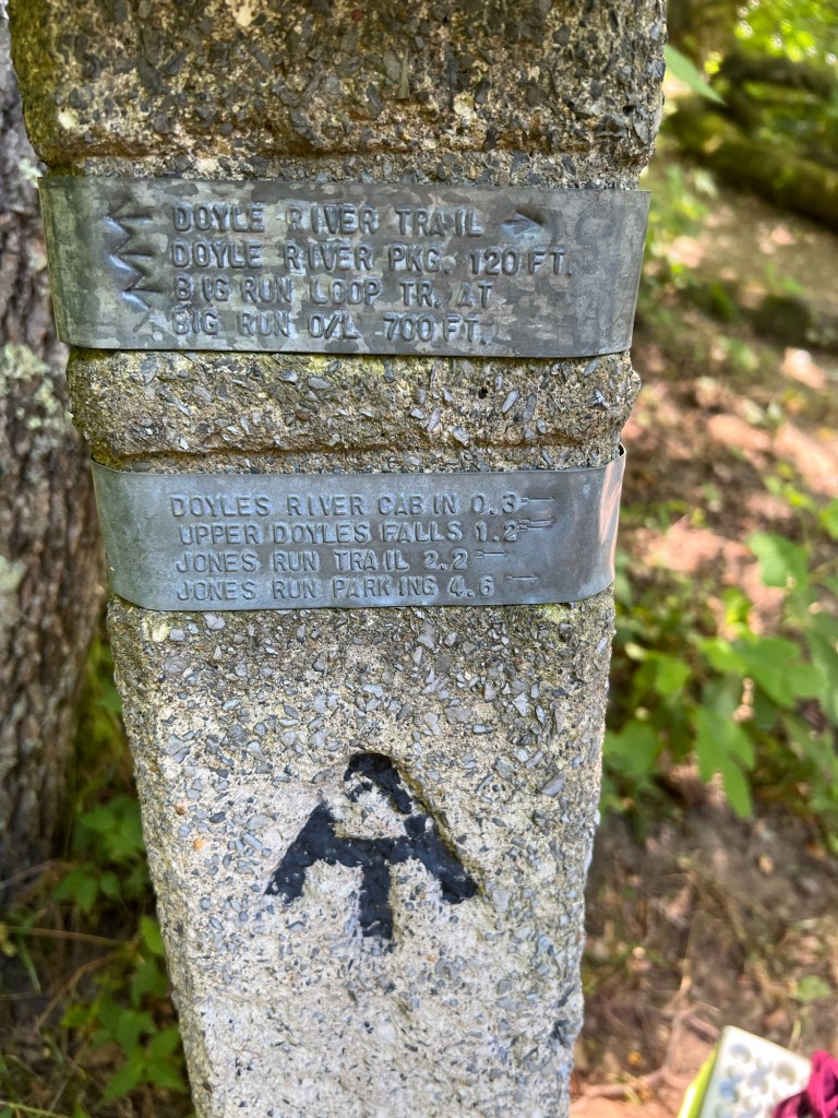 Doyle’s River Run was probably the worst combination of uphill climb, rough steep terrain, and lying mile markers that could have been concocted on a Tuesday morning. And so the cursing of the landscape begins. As we trudged along, we encounter many day hikers descending down past us to get a look at Doyle’s River Falls and enjoy the morning. We did our best to greet these daypack wearing humans with a smile because breathless as we were, words were not really producible. Reaching the intersection with the Appalachian Trail felt like a small miracle. Like we had just clawed our way out of the pit of despair. Here we were faced with a choice.