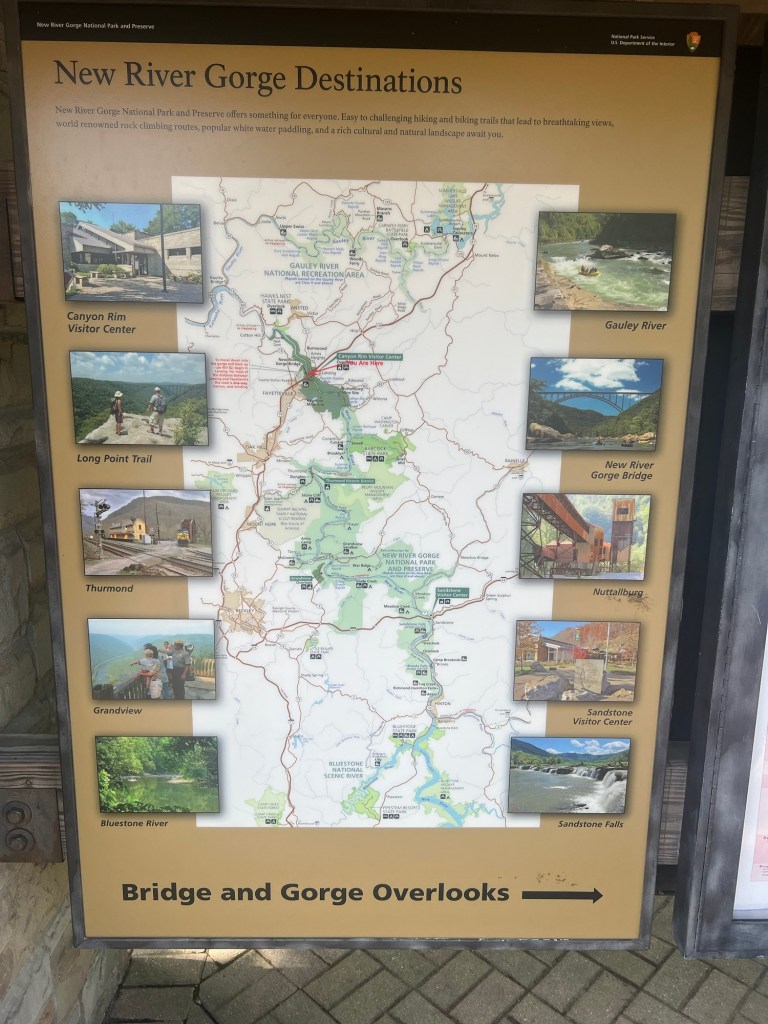 While there you can view a gallery of history about the New River Gorge’s past and its journey to becoming one of the newest National Parks and preserves. Additionally, if you are a National Park junkie like me, you can collect your much needed National Park Service Unigrid Map and any merchandise that you might find yourself in need of. When I was there, the internet was down, so I would bring cash just in case. I am sure its not always down, but there is an ATM at the gas station before you enter the park if you find you need it. Additionally, the National Park Rangers and Staff are all extremely knowledgeable and helpful. If you are looking to do something specific or have questions, ask!