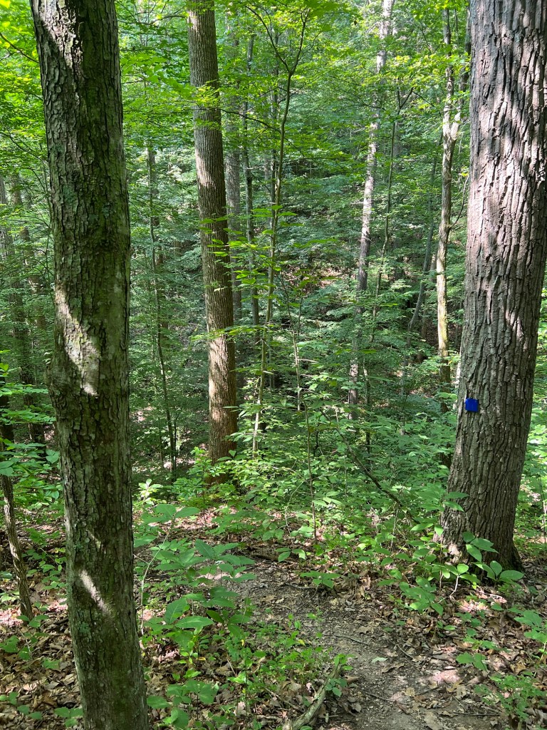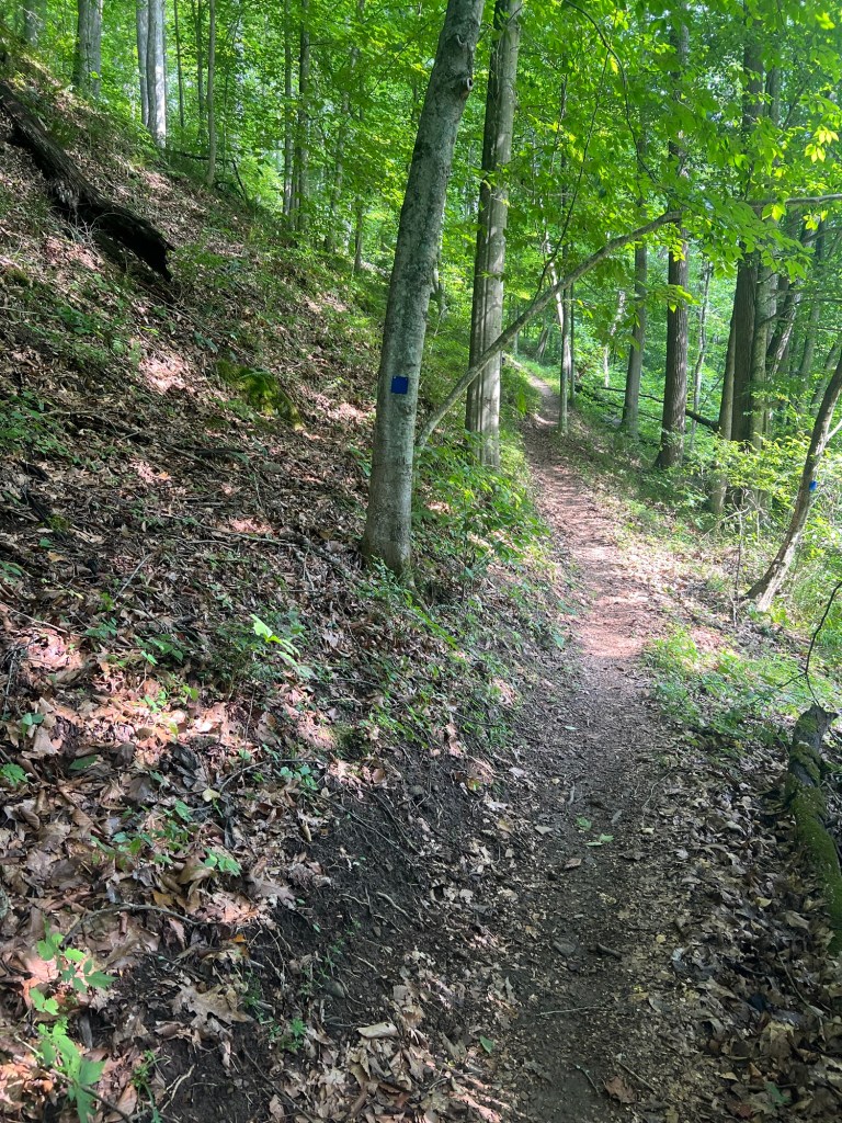 The trail definitely lives up to its name. It is marked by two things- a blue square trail blaze and some steep climbs and descents. Within the first mile, it climbs to one of its highest points pretty quickly from the trailhead. While there is some switchbacks utilized, they are your classic Appalachian switchbacks- still steep, just slightly less so.