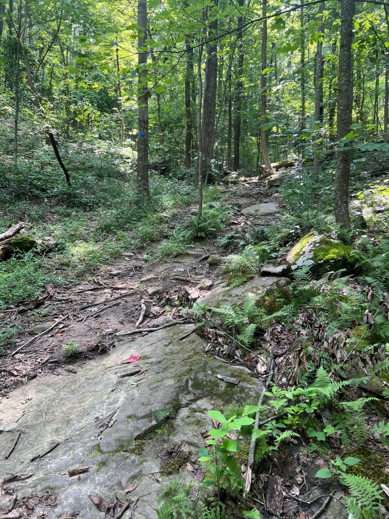 If you are following the trail series in Kanawha State forest in the order that they were written, you can pick up this trail at the end of the Rocky Ridge Trail. This can help create a loop to get back to the Rocky Ridge Trail Head if you don’t want to do an out and back. That being said, if you are going to do this, be warned this is a challenging trail to hike. And the combo makes part of a difficult loop.